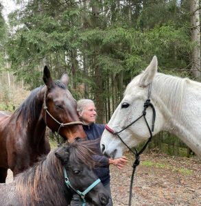 Mein Ereignis-Coaching-Team besteht aus meiner weißen Mecklenburger Stute sowie meiner schwarzen Shetland-Pony-Stute. Am 8. März 2025 musste ich meine Hannoveraner Stute einschläfern lassen. Ich vermisse sie. Sie hat so vielen Kundinnen und Kunden unterstützt und ihnen die Augen geöffnet. Sie war ein außergewöhnliches Pferd, das mich ausgesucht hat, nicht umgekehrt. Ich bin zutiefst dankbar, dass sie meine Entwicklung begleitet hat. Dankbar bin ich auch dafür erleben zu dürfen, wie mein Schimmel eine neue Rolle für sich entdeckt und über sich hinauswächst.
